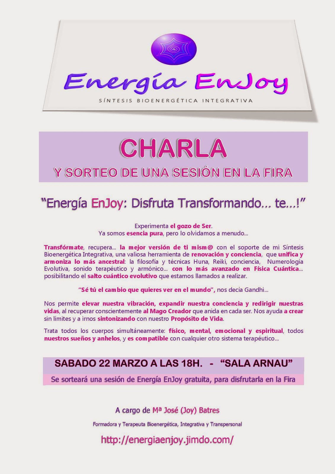 Al final de la charla, SORTEARÉ UNA SESIÓN GRATUITA de Energía EnJoy, entre l@s asistentes, para realizar en la carpa durante la Fira!